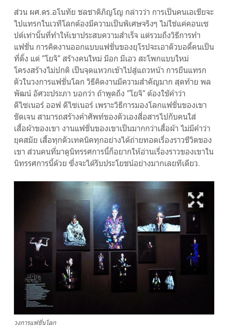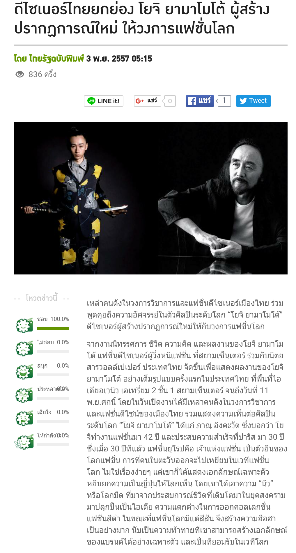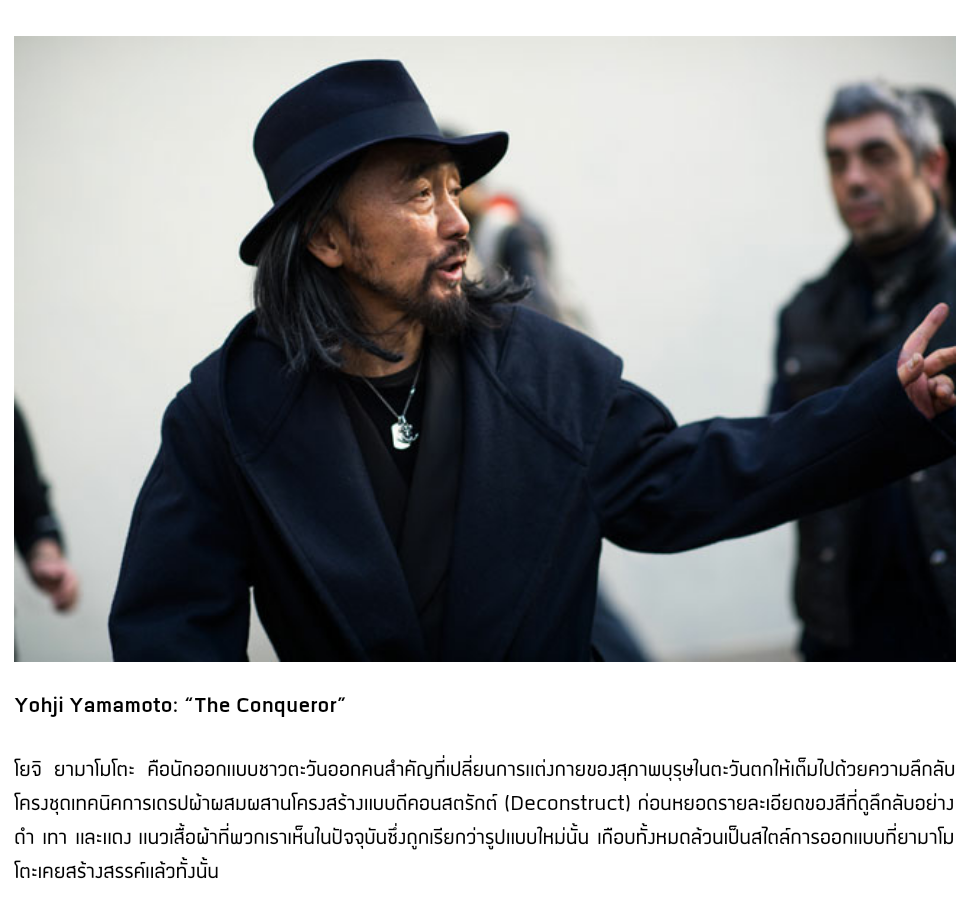 ดีไซเนอร์ไทยยกย่อง โยจิ ยามาโมโต้ ผู้สร้างปรากฏการณ์ใหม่ ให้วงการแฟชั่นโลก http://www.thairath.co.th/content/460817