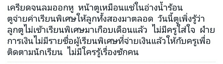 แต่ถ้าเป็นสมัย จขกท เรียนพิเศษนะ ครูดันเป็นเพื่อนพี่สาว (พี่สาวแก่กว่า จขกท ราว 16 ปี) ถ้าโดด พี่สาวจะทราบทันที โดดไม่ได้ > เป็นการป้องกันการโดดจาก รร สอนพิเศษ