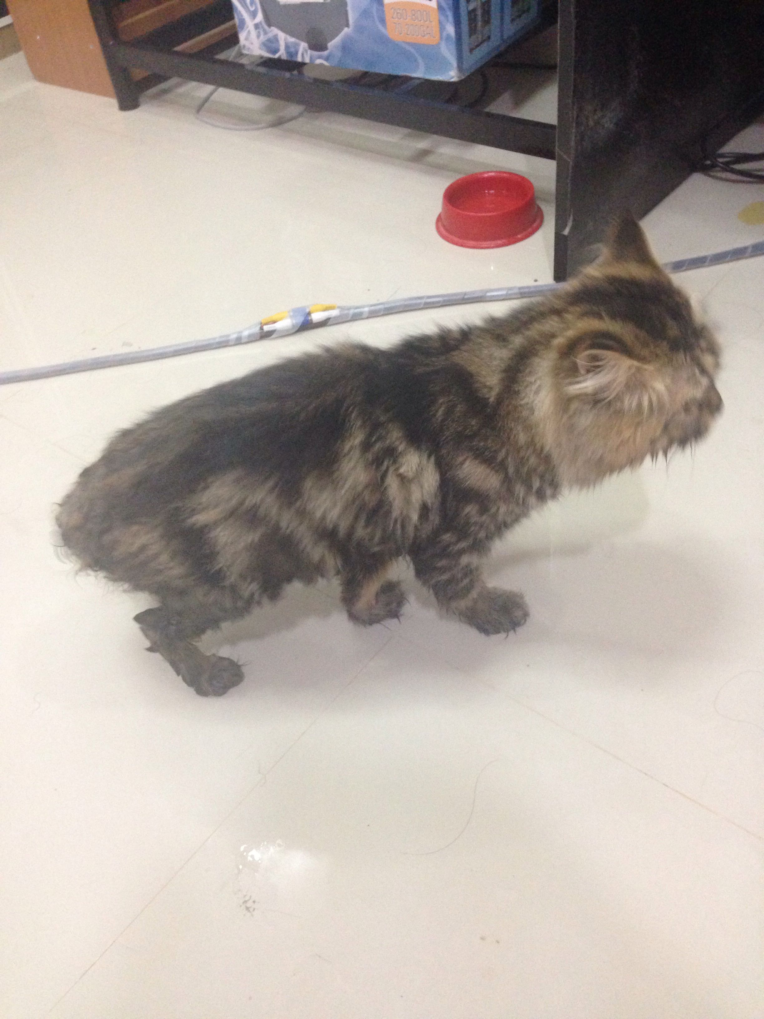 น้องยังช๊อคกับเหตุการณ์ที่พลาดตกตู้ปลาอยู่น่ะครับ แมวส่วนใหญ่ไม่ชอบน้ำอยู่แล้ว เมื่อขนเปียกน้ำจากอุบัติเหตุนี้ เขาก็จะรู้สึกเครียด หวาดกลัวแน่นอนครับ