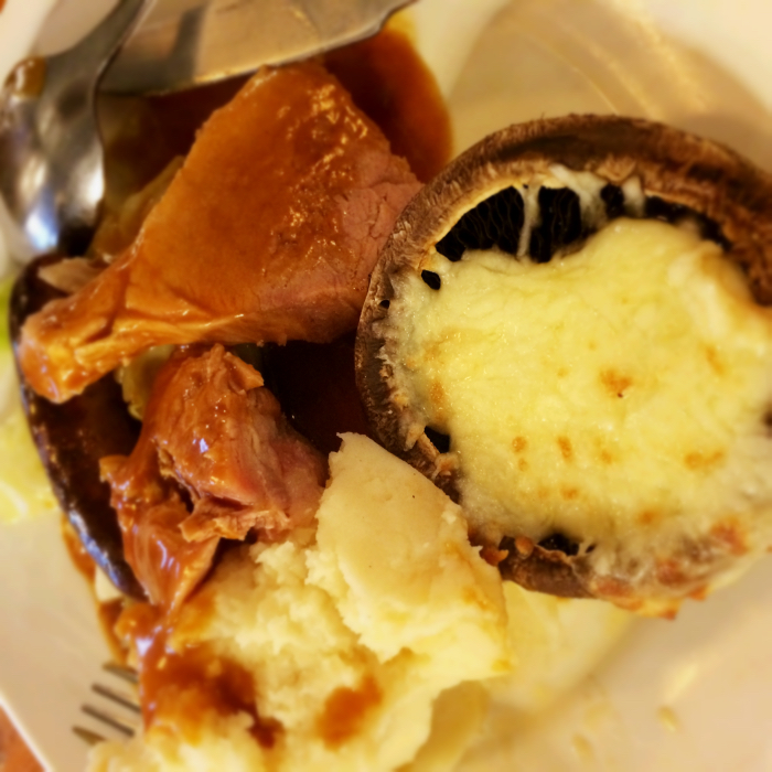 ร้านอยู่ในย่านอุตสาหกรรม เพื่อนร่วมงานเล่าว่าต้องทำการขออนุญาตเปิดร้านสำหรับคนในเขตอุตสาหกรรมโดยเฉพาะ ร้านจะทางเข้าแอบ ๆ นิดนึง แต่พอเข้าไป มีการตกแต่งแบบเก๋า ๆ ดี มีอาหารเที่ยงขายแบบเป็นชุดง่าย ๆ สำหรับคนทำงาน ของทั้งเราและเพื่อนร่วมงานสั่งเซ็ต Spanish Ham, English Saugsage, Portobello อบชีส และ Mashed Potato ก็อร่อยแบบน่าจะเน้นอิ่ม ที่เห็นในจานนี้ในที่สุดเรากินไม่หมดค่ะ ร้านนี้ที่เห็นในเมนูอื่น ๆคือ พวกอาหารตะวันตก เบอร์เกอร์ ขาหมูทอด (แบบฝรั่งเป็นต้น) และน้ำคนละแก้ว หมดไป 112 HKD (สองคน)