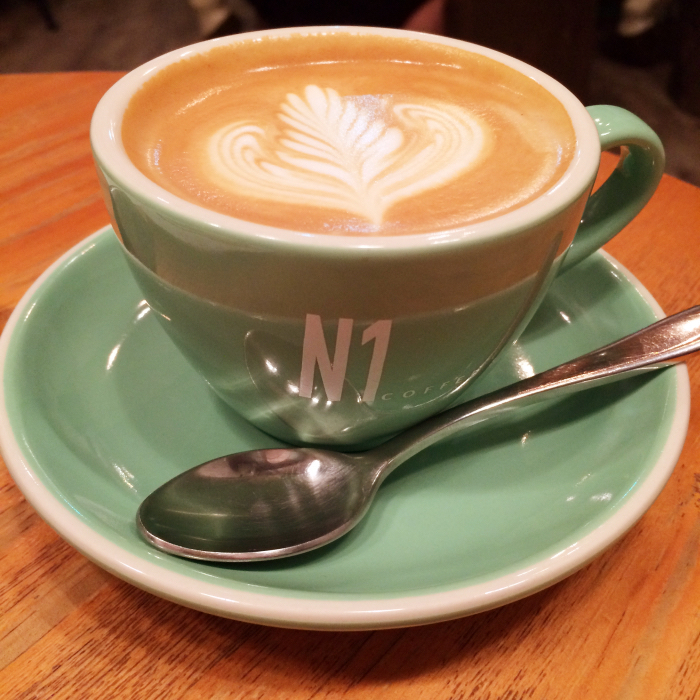 ร้านสุดท้ายที่ไปเยือนคือ ตั้งใจจะหาร้านกาแฟดูสักร้าน แล้วก็ลงเอยที่ N1 Coffee and Company ค่ะ อยู่ใกล้ ๆ ทางออก N1 ของสถานี East Tsim sha Tsui เพราะใกล้กับที่เราจะไปชอปปิ้ง ไปแล้วสั่งพายเลมอน และ Flat White มา กาแฟดีมากค่ะ พายเลมอนหน้าตาธรรมดา แต่แป้งอร่อยค่ะ ส่วนมากร้านกาแฟคนจะนั่งชิว ๆ กันอยู่แล้ว บรรยากาศอบอุ่นดี ก็เลยทานสบาย ๆ นั่งคนเดียวก็ไม่น่ากลัวค่ะ