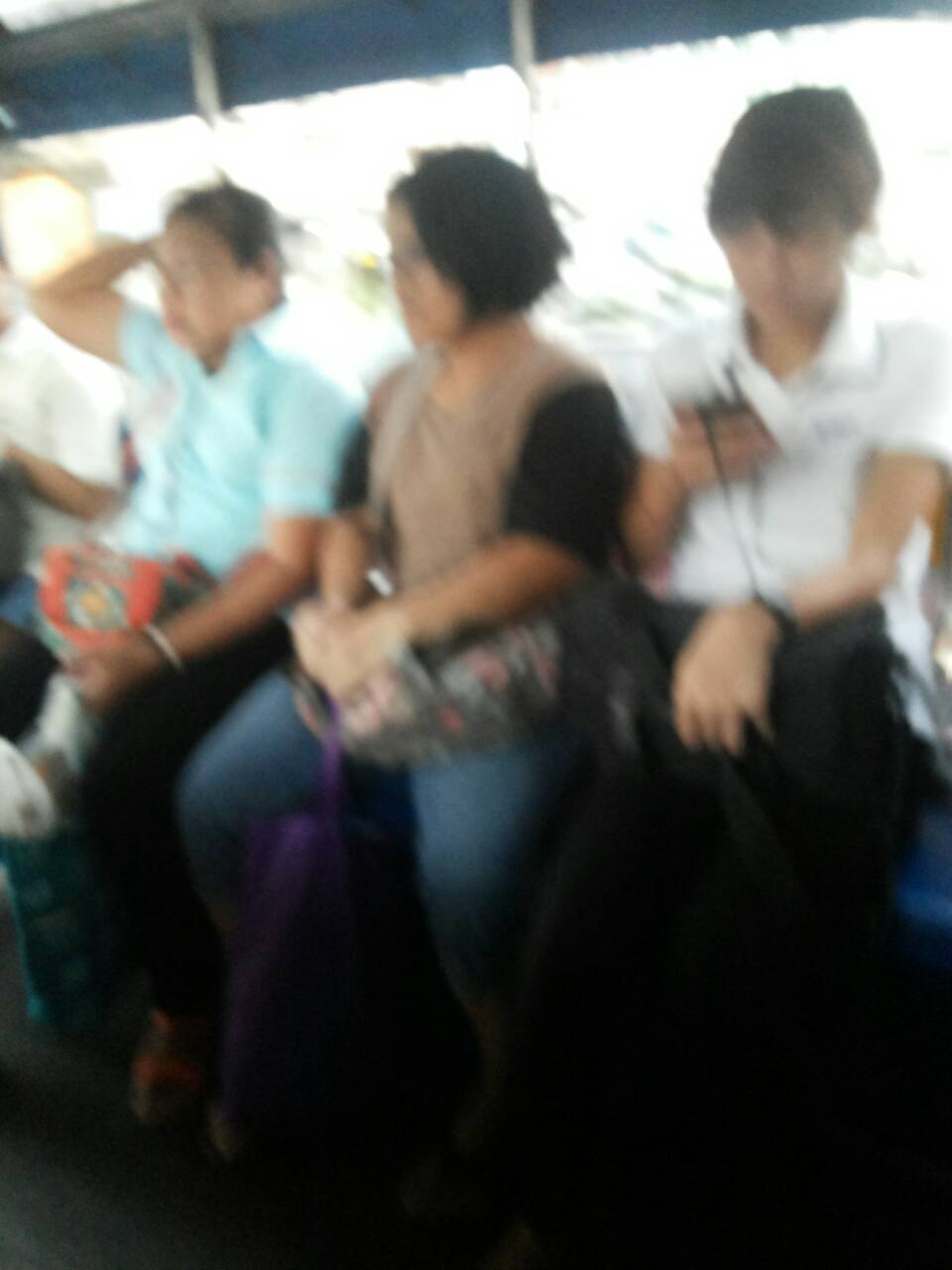 ดูรูปคะสำหรับคนที่ไม่เคยมามันติดแบบนี้จริงๆคะ เราเลยบ่นกับเพื่อนว่าจะลงเดินเพราะยังไม่ถึงสะพานลอยเรวดีเลยแต่รถก็ออกพอดีเลยไม่อะไรเพื่อนเราก็ลงก่อนในรถเหลือเรากับผู้โดยสารคนอื่นที่เป็น ผู้หญิง เด็กและคนชราคะ รถเริ่มติดหนักขึ้นติดมากๆจนเราเริ่มหงุดหงิดแล้วเพราะอากาศที่มันอบอ้าวรถก็ติด แต่แค่นั้นยังไม่ถึงครึ่งของความหงุดหงิดของเราไม่แค่อากาศร้อนรถติดนางสองแถวนี่แหละคะ นางพุ่งไปอย่างรวดเร็วพุ่งๆเบรคๆ พุ่งไปเบรคไปบีบแตรไปจนตัวเรากระแทกกับรถตลอดทาง!!!!!!! #ซึ่งเราก็รู้ว่าแยกแครายเป็นอภิมหารถโครตติด นางพุ่งแรงมากนางบีบแตรไล่มอไซด์รถทุกคันและรถยนต์ทุกคันโดยที่ไม่สนว่าผู้โดยสารจะลงป้ายไหน พอมาถึงบิ๊กซีรัตนาธิเบศร์(คาร์ฟูเก่า) มีพี่ผู้หญิงคนนึงกดกริ่งเพื่อที่จะลง ย้ำคะตรงจุดนี้พีคมาก พีคแรงมาก!!! นางก็จอดนะพอจอดก็มีคุณป้าท่านนึงวิ่งมาเพื่อที่จะขึ้นส่วนพี่ผู้หญิงคนนั้นกำลังก้าวขาลงจากรถยังไม่ทันจะก้าวดีนางก้เร่งรถไม่ทราบว่าแฟนหรือเพื่อนก็วิ่งมารับพี่เขาทันพอดีไม่งั้นพี่เขาก็คงจะตกรถแน่นอนคะค่าโดยสารก็ไม่ได้จ่าย นางก็มาจอดเลยบิ๊กซีมานิดนึงตรงสะพานลอยคุณป้าที่วิ่งมาตั้งแต่แรกก็ยังวิ่งต่อคะเพื่อที่จะขึ้นอีสองแถวคันนี้ แต่คราวนี้คุณป้าคนนี้จับราวได้แล้ว (จะบอกว่าไม่เห็นก็ไม่ได้นะคะย้ำเลยนะคะว่ารถสองแถวสาย1024มีกล้องเพื่อดูผู้โดยสารขึ้นลงจะบอกว่าเสียก็ไม่ได้คะรถเพิ่งซื้อป้ายแดงแล้วถ้าจะบอกว่าไม่ได้เปิดก็คงจะไม่ได้คะเพราะตอนเรานั่งเรามองจอของเขาอยู่ยืนยันได้ว่าเปิด) คุณป้ากำลังจะก้าวขานางก้เร่งรถคะแต่คุณป้าไม่ได้ปล่อยมือก็ยังวิ่งทั้งๆที่มือจับราวเหล็กเอาไว้ทุกคนกรี๊ดเพราะคุณป้าจะล้มแล้วพอคุณป้าปล่อยมือก็เหมือนจะล้มเราเลยรีบทุบกระจกกดกริ่งย้ำๆ ด้วยความที่โมโหนางก็จอดแต่พอรถออกตัวก้พุ่งไปเลยเหมือนไม่พอใจนางก้พุ่งๆๆๆๆไปด้วยความเร็วมากๆประเดิมด้วยความโมโหจากที่รถติดแยกแครายมา และยิ่งมาขับแบบนี้ทำแบบนี้เราเลยตัดสินใจถ่ายรูปผู้หญิงคนกลางคือคุณป้าที่จับราวเหล็กวิ่งตามรถอย่างที่บอกคะว่านางพุ่งแรงมากภาพเลยไม่ชัด