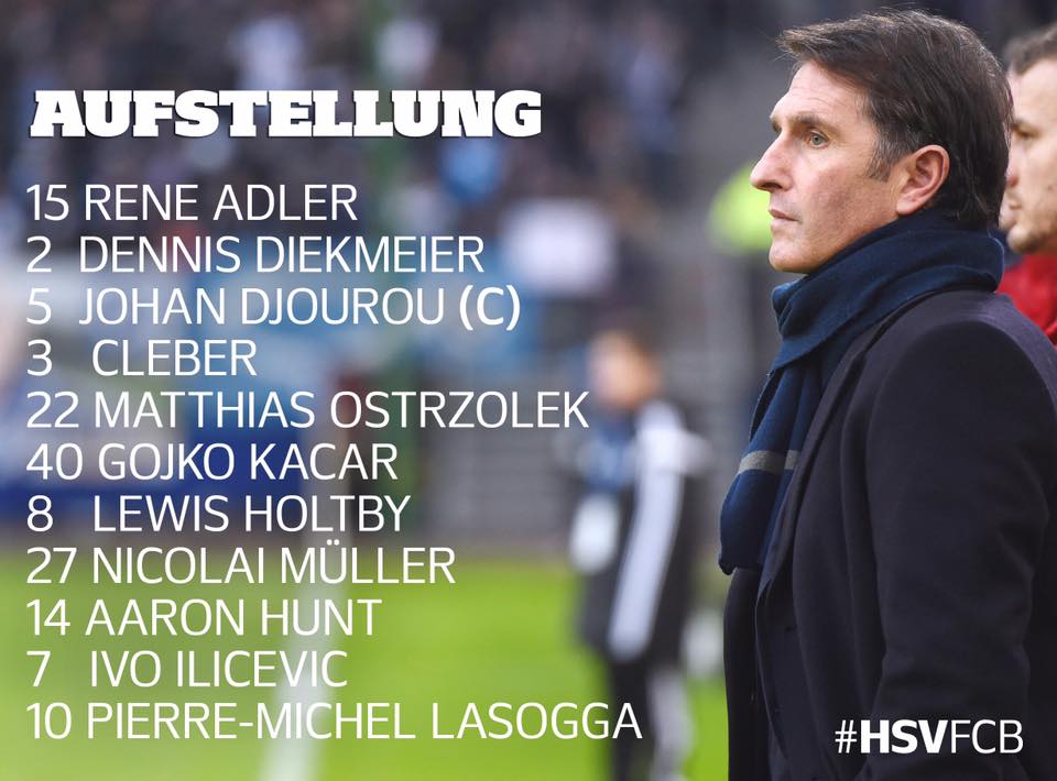 Holtby; Muller, Hunt, Ilicevic; Lasogga.
