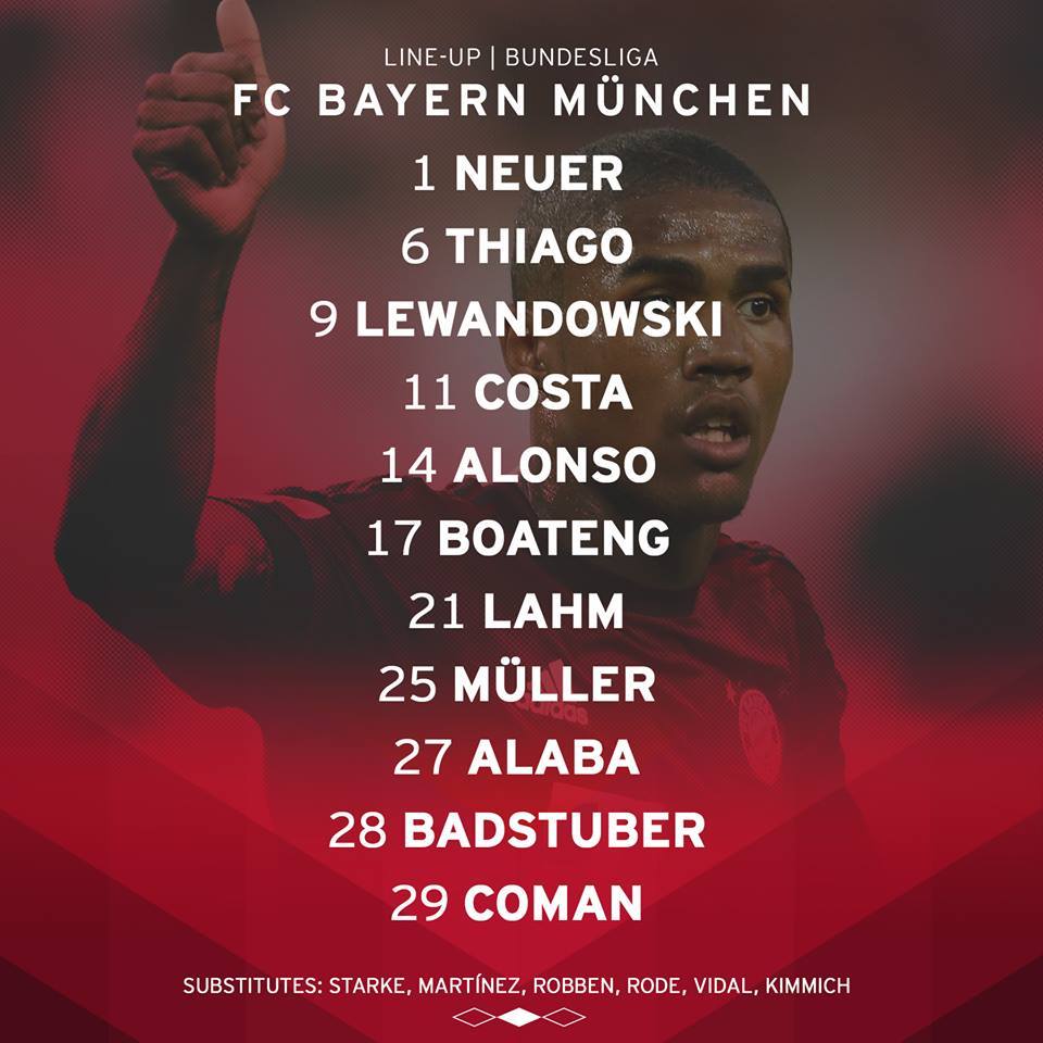Neuer - Thiago, Lewandowski, Costa, Alonso, Boateng,