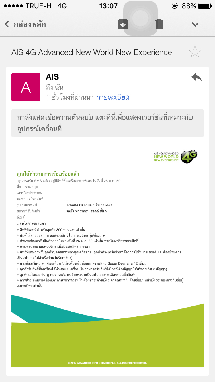 ที่ส่งเมลมา คือผมได้แล้วใช่ป่ะ. รอ ข้อความยืนยันอีกที