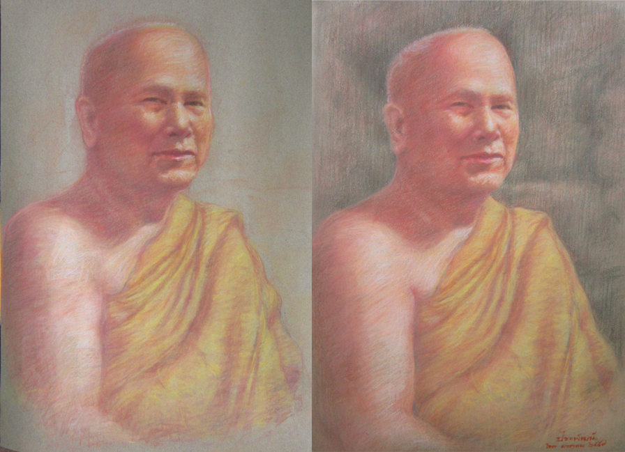 แชร์ผลงานภาพวาด portrait หลวงพ่อปัญญานันทภิกขุ สีชอล์คอัดแท่งครับ...