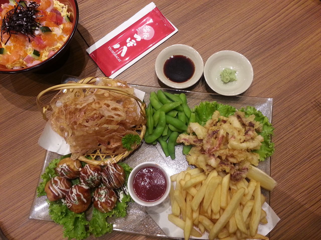 มีหมึกทอด รากบัวทอด เฟรนซ์ฟราย ทาโกยากิ ถั่วแระต้ม