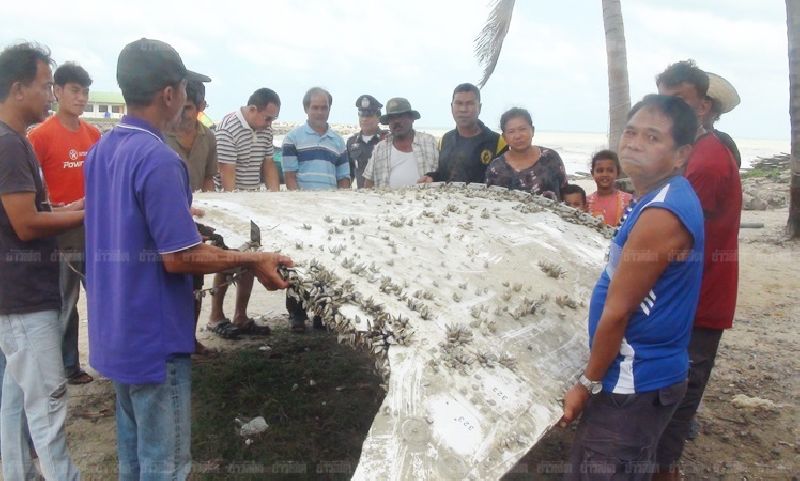 เบื้องต้นเจ้าหน้าที่ได้โทรสอบถามผู้เชี่ยวชาญด้านการบิน พร้อมอธิบายลักษณะของซากชิ้นส่วนดังกล่าวให้ทราบ จึงสันนิษฐานว่าน่าจะเป็นซากเครื่องบิน โดยชิ้นส่วนที่พบนี้เป็นกรอบนอกของส่วนหัว ซึ่งไม่แน่ใจว่าเป็นชิ้นส่วนของเครื่องบินจากที่ไหน ขณะที่ชาวบ้านวิจารณ์กันว่าอาจจะเป็นซากเครื่องบิน MH 370 ของมาเลเซียที่หายไปอย่างไร้ร่องรอย ประมาณ 1 ปี เศษ ซึ่งตรงกับที่ชาวประมงระบุว่าตัวเพรียงจะเกาะซากนี้ต้องใช้เวลาประมาณ 1 ปีเศษเช่นกัน