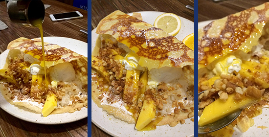 ทั้งหมดทั้งมวลคือชอบการที่เอามาผสมกัน ระหว่างเครปฝรั่งเศสและข้าวเหนียวมะม่วงของไทย
