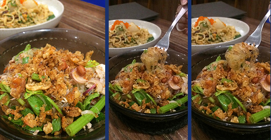 ก่อนจะโรยด้วยถั่วลิสงหั่นๆ เพิ่มเทกเจอร์ให้เมนูนี้
