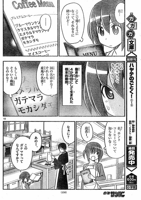 แต่กระนั้น อายุมุก็มีทำงานพิเศษหลังเลิกเรียนอยู่ เป็นสาวเสิร์ฟในร้านคาเฟ่ที่มีลูกค้าน้อยมากจนแทบไม่มีอะไรจะทำ เวลาส่วนใหญ่จริงๆเธอก็ดูแต่เมนู พอดูแล้วก็คิดว่าตัวเองก็ทำงานที่นี่มาพักหนึ่งแล้ว แต่จนถึงตอนนี้ก็ไม่รู้เลยว่า... "กัวเตมาลา" คืออะไร เป็นคำถามที่ชวนสงสัยสำหรับเธอที่ทำงานมาถึง 4 เดือน เธอรู้ว่านี่มันชื่อเมืองไม่ใช่เหรอ หรือจะเป็นกาแฟที่มาจากที่นั้น หรือจะเป็นชนิดเมล็ดกาแฟกันแน่ ยิ่งตัวเธอที่ไม่ค่อยรู้เรื่องกาแฟด้วย อายุมุเลยตัดสินใจถามผู้จัดการไปตรงๆเลย และคำตอบที่ได้คือ.... "โมบิลสูทตัวใหม่" เธอเชื่อใจผู้ใหญ่ไม่ได้เลย