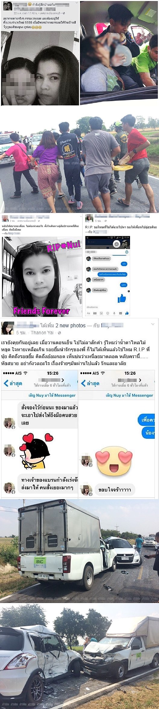 สาวโพสต์เป็นลางร้าย!! ก่อนขับเก๋งไปไหว้พระ ชนกระบะ ตายพร้อมแม่ - ลูกวัย12 รอด @ อ.บ้านหมี่ จ.ลพบุรี