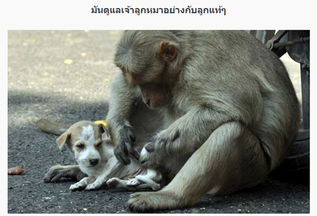 ซึ้งจริงๆ แม่ลิงกับลูกหมา