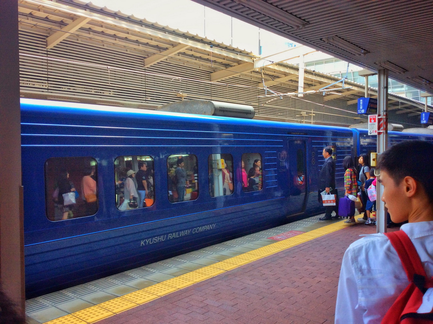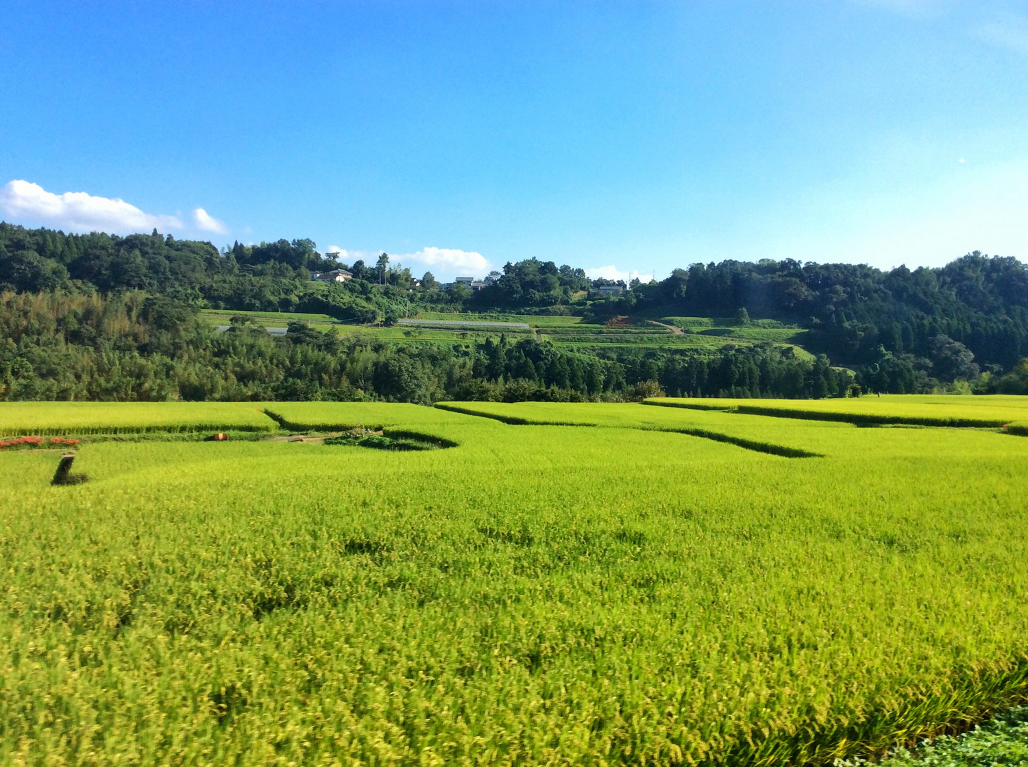 นั่งรถโซนิคลงโออิตะ แล้วต่อรถหวานเย็นมา ชมวิวสวยดีครับ ทุ่งนาเค้าดูเป็นระเบียบมาก