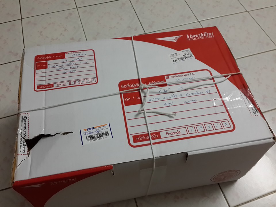 ไปรษณีย์ไทยนี่มาตรฐานคงเส้นคงวาจริงๆ ... กล่องพัสดุโดนเจาะ