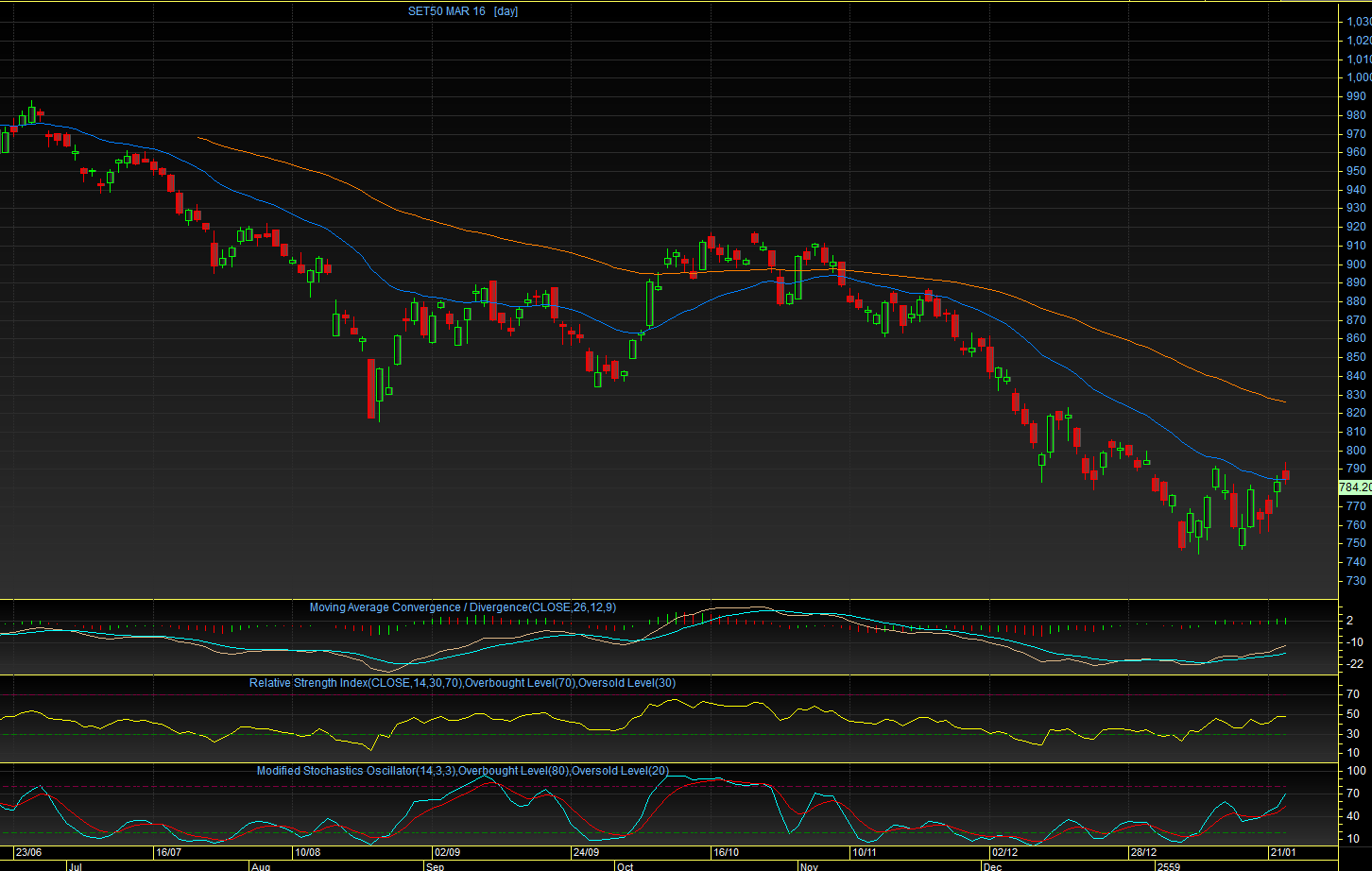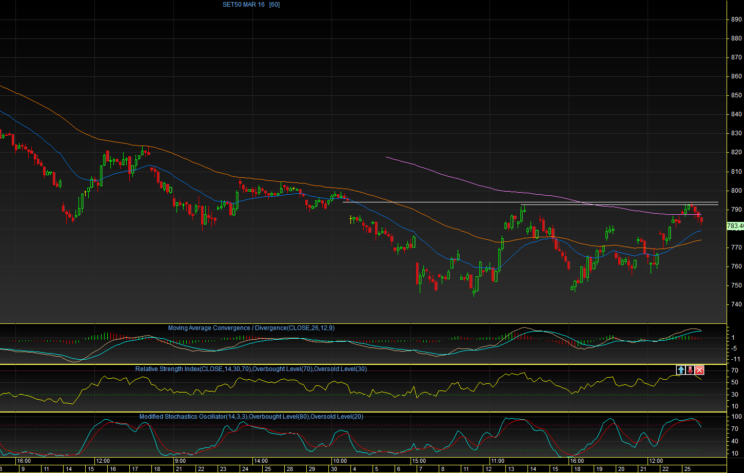 S50H16 TF Day : ช่วงเช้าวานนี้ ดัชนีได้ทะยานขึ้นไปยืนเหนือระดับ 790 จุด / EMA25 วัน ได้สำเร็จ