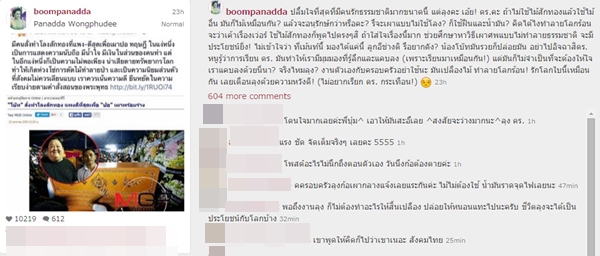 ที่ออกมาแสดงความคิดเห็นผ่านอินสตาแกรม ระบุว่า เรื่องที่ ดร.โสภณ มองว่าการทำโลงไม้เป็นการสร้างค่านิยมผิด ๆ นั้น ตนคิดว่าไม่น่าจะใช่เพราะปัจจุบันไม่ว่าใครเสียชีวิตก็ต้องใส่โลงไม้ ท่านจบสูงมาก็จริงแต่ขอให้เอาความรู้ที่เรียนมาไปใช้พัฒนาด้านอื่นเถอะ แต่ถ้ากังวลเรื่องสิ่งแวดล้อมมากขอเสนอให้ใช้ฟางห่อ เผาแบบไก่อบโอ่ง ทำน้ำจิ้มแจกกันทั้งงานเลยดีไหม