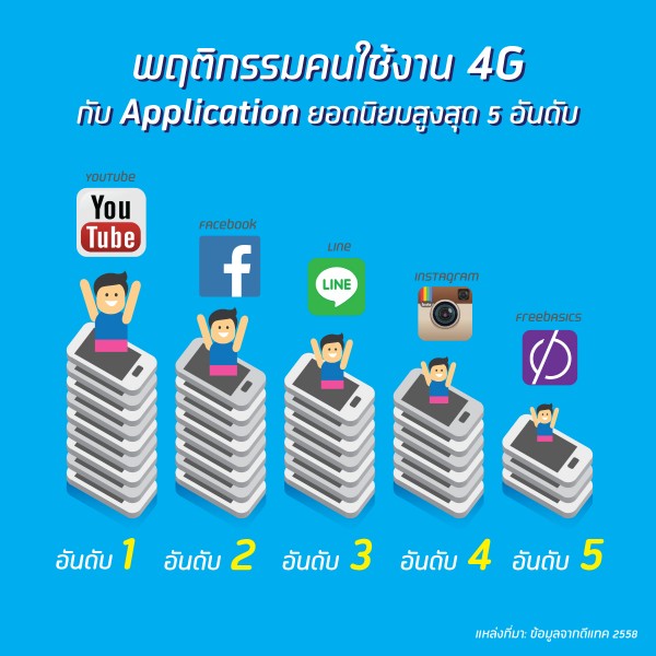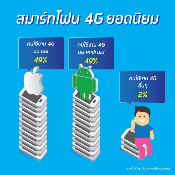 ขณะที่การเก็บข้อมูลพฤติกรรมการใช้งานในช่วงปี 58 พบว่า ลูกค้าของ dtac ส่วนใหญ่ต่างใช้งาน 4G ผ่านระบบปฏิบัติการ iOS และ Android ด้วยค่าเฉลี่ยที่เท่าๆกัน 49% ขณะที่ เมกะบางนา เป็นพื้นที่ที่มีการใช้งานมากที่สุด โดยลูกค้าส่วนใหญ่มักใช้ไปกับแอพพลิเคชั่น YouTube