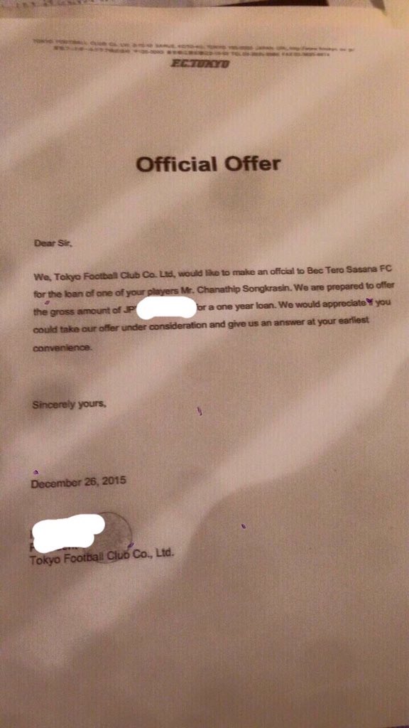 มีข้อเสนอยืมตัวจาก FC Tokyo มาถึงเทโร???