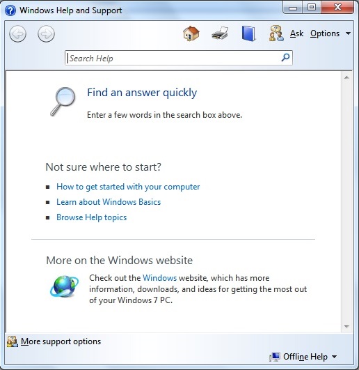 รบกวนเรื่อง Windows7 จะปิดหน้าจอ Help & Support ได้อย่างไรครับ