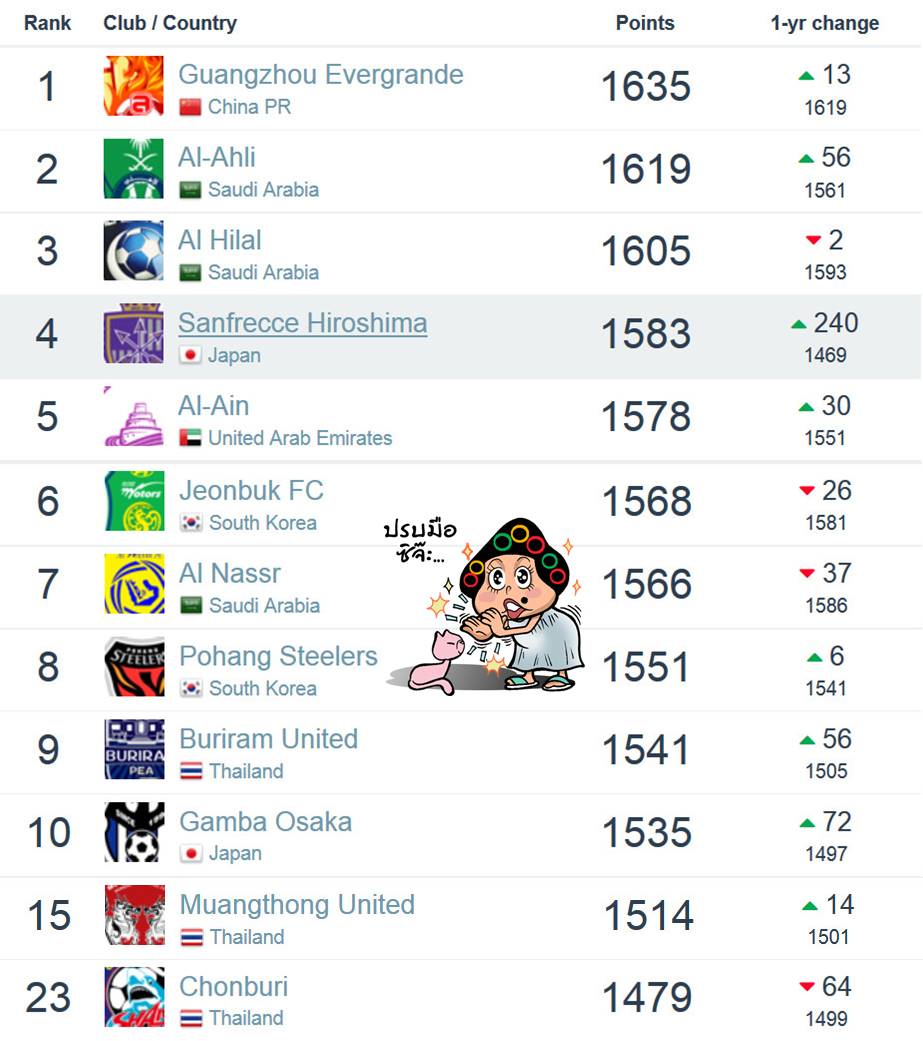 แรงต่อเนื่อง!!! บุรีรัมย์ ยูไนเต็ด รั้งอันดับ 9 สโมสรเอเชีย