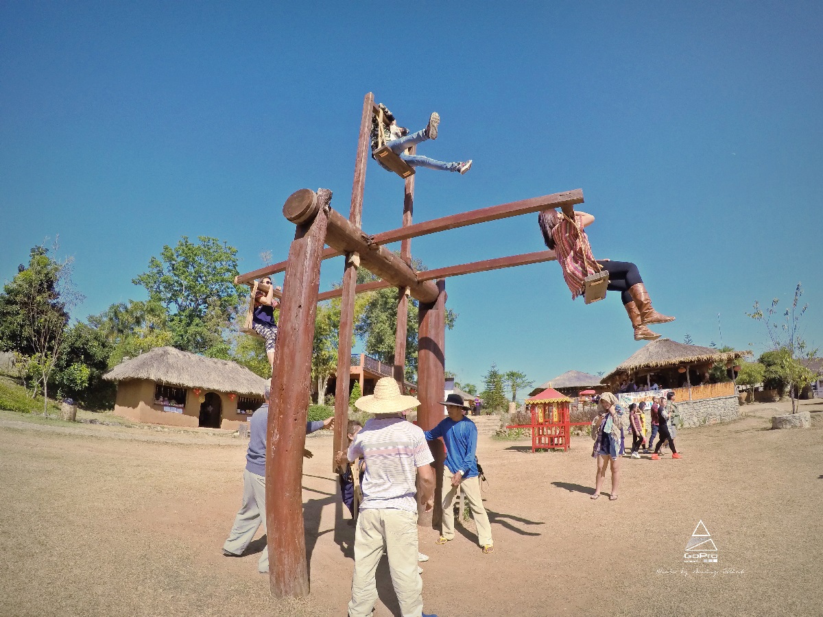 อย่างแรกที่พุ่งไปเล่นเลย ชิงช้ายูนนาน หรือชิงช้าแบบชาวเขาสไตล์นั่นเอง