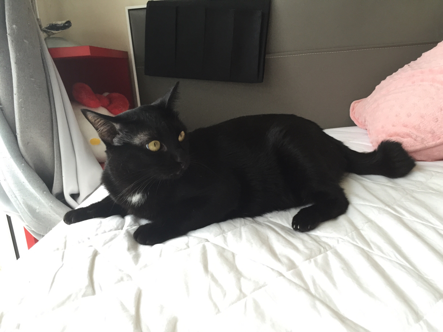 เมย์มีแมวอยู่ตัวนึง เก็บมาเลี้ยงได้เกือบสองปีแล้ว เป็นอดีตแมวจร ตอนเก็บมาอายุได้ 8-9 เดือนแล้ว แรกเลยจะจับมาทำหมัน แต่แล้วก็ปล่อยไม่ลง เลี้ยงต่อมาเลย