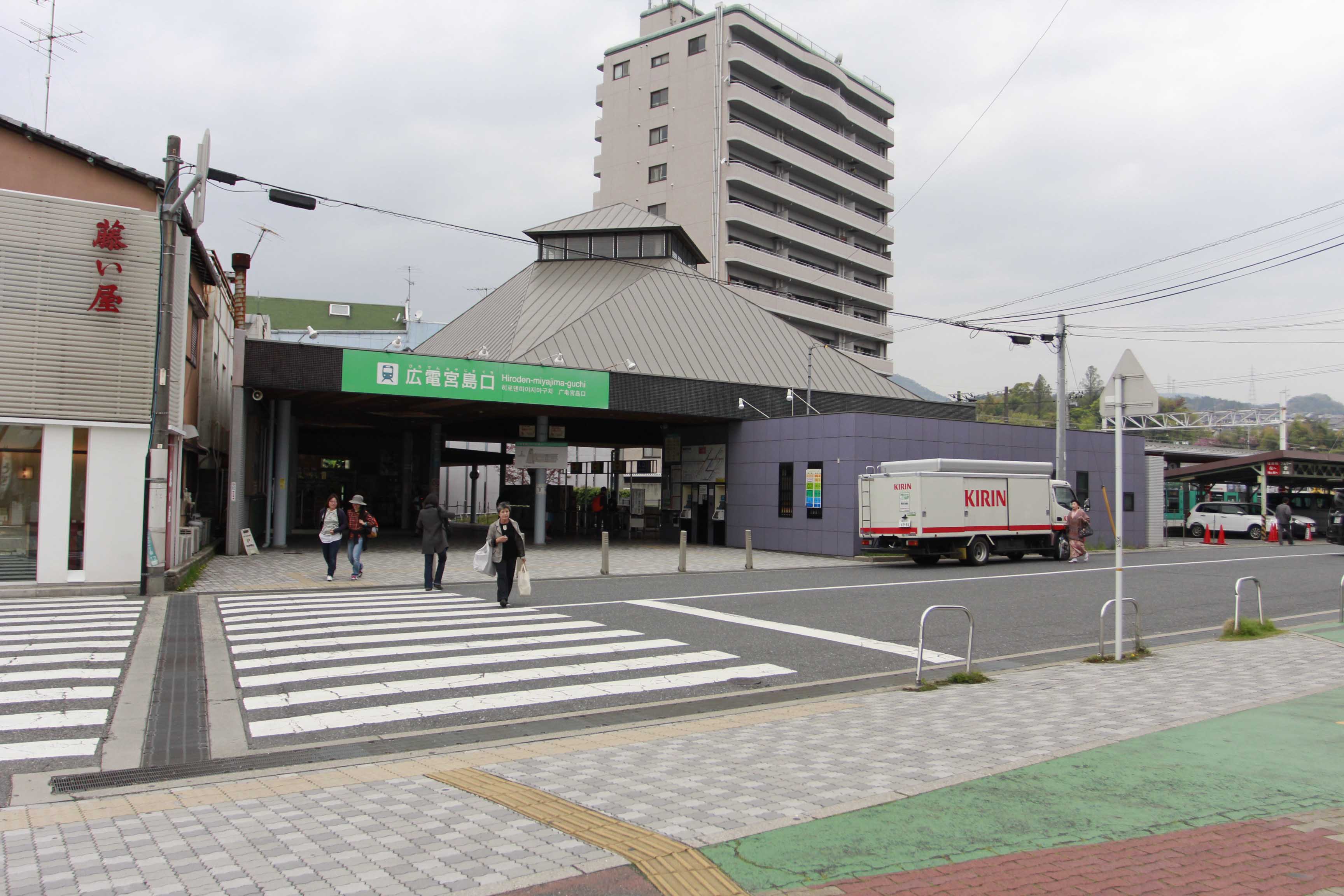 รถก็ขับมาเรื่อยๆ ผมก็อินกับข้างทาง เพราะอะไรๆก็แปลกไปหมดสำหรับผม ชอบจนไม่อยากจะให้ถึงไวๆ.........จากนั้น จนมาถึงสถานีขนส่งของ ฮิโรชิม่า แบบว่า อยู่ชั้นสอง ของตึกอะไรสักอย่าง พอลงผมรถมา ก็ งงเลย ว่าจะไปทางไหนต่อ ถามคนแถวนั้น เขาก็เลี่ยงจะไม่คุยกับเรา (ต้องบอกก่อนว่าคนญี่ปุ่นเขาจะกลัว คนต่างชาติเข้ามาคุยเพราะเขาไม่ค่อยเก่งภาษาอังกฤษ ถ้านึกภาพไม่ออก ก็คล้ายๆ กับคนต่างชาติมาถามทางเราในไทยแล้ว เราไม่รู้จะพูดอะไรแหล่ะครับ) เดินๆลง มาเจอทางออกจนได้... จากแผนที่ได้เตรียมมาว่าจะไปวัดที่มีประตูอยู่กลางน้ำ ต้องขึ้นรถไฟ ไปจนสุดสาย จากในเมือง พอลงมาถึงก็หาสถานีรถไฟ หาเท่าไรก็หาไม่เจอ จนมาเจอนี่...