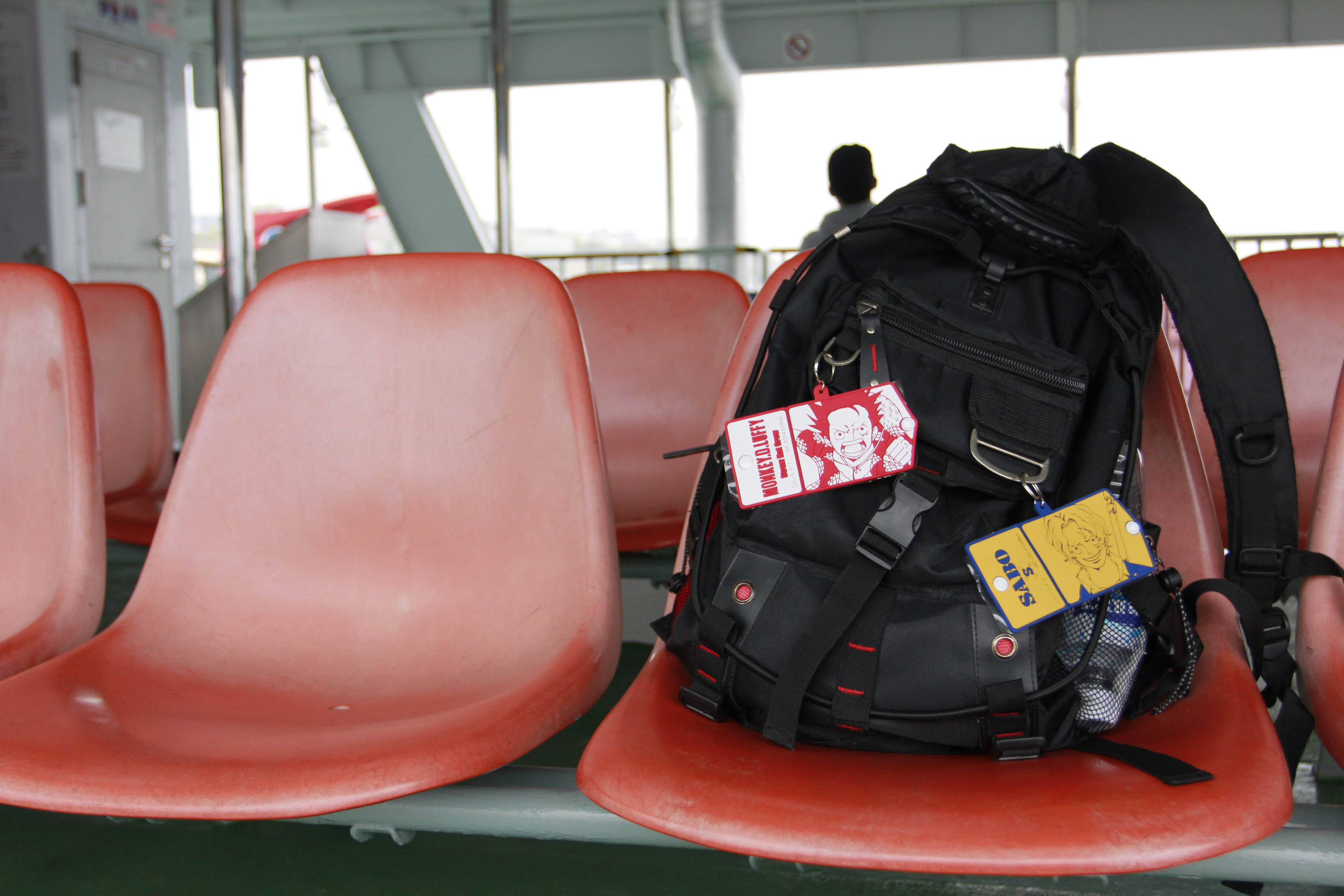 นี่คือกระเป๋าที่ผมติดตัวมาด้วยในทริปวันนี้ ภายในประกอบด้วยกล้อง DSLR แค่นั้นแหล่ะ (ที่จริงไม่ต้องเอามาก็ได้เนาะ) สะพายไว้หน่อยมีไว้อุ่นใจ แก้เขิล>< ที่อยากจะบอกคือ เห็นที่ติดกระเป๋าไหมครับ รูปวันพีช ที่จริงผมเฉยๆนะ น้องชายผมชอบเลยกะจะซื้อไปฝาก ที่ห้อยแบบนี้เพราะผมเห็นที่โตเกียว เวลาเขาสะพายกระเป๋า ห้อยสารพัด ห้อยตุ๊กตาบ้าง การ์ดบ้าง (เคยเจอแปลกๆคือ ห้อยกล่องโมเดลกันดั้ม !!!) ไม่รู้จะห้อยอะไรนักเยอะแยะ ห้อยแบบเยอะมากก เห็นจนชินตา... แต่เพราะผมเป็นชาวต่างชาติ และห้อยวันพีชนี่แหล่ะ จึงเกิดเหตุการณ์ที่ทำให้ผมเป็นมิตรกับพวกนักเรียนนักศึกษา ญี่ปุ่นก็เหมือนบ้านเราที่จะมีเด็กกล้าๆกลัวๆ ที่จะเข้าไปคุยกับฝรั่ง เวลาอยากจะใช้ภาษาอังกฤษ แต่พอเขาเห็นเราเดินอยู่ไกล เห็นสิ่งที่เราห้อยอยู่บนกระเป๋า เขาจะเดินตรงเขามาทักทาย และประโยคแรกที่เขาถามกันคือ ชอบวันพีชหรอ อะไรแบบนี้ ทำให้เราคิดว่า โลกของการ์ตูนนั้น ทำให้เขากล้าที่จะมาคุยกับเราได้เหมือนกัน ก็พูดถูกบ้าง ผิดบ้าง ตามประสา (คือผมก็ไม่ได้เก่งมาก แต่พอสื่อสารรู้เรื่อง แล้วก็อยากจะคุยอยู่แล้วด้วย)...