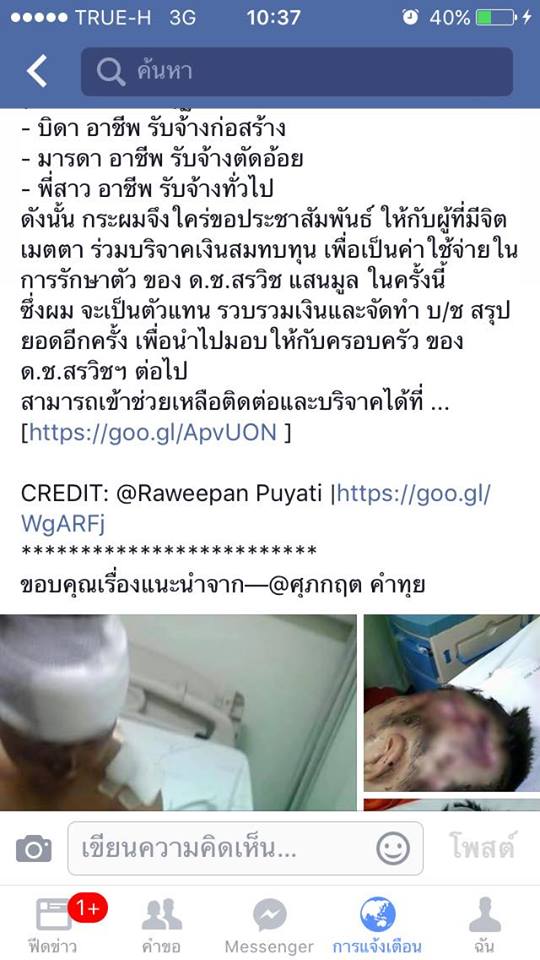 ผมได้ไปเจอโพสขอบริจาคเงินค่าพยาบาลเรื่องน้อง ป.5 ประสบอุบัติเหตุทางมอเตอร์ไซต์