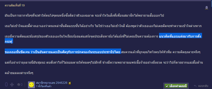 แนวคิดที่แอบแฝงมากับการตั้งกระทู้ของเธอนั้นชัดเจน