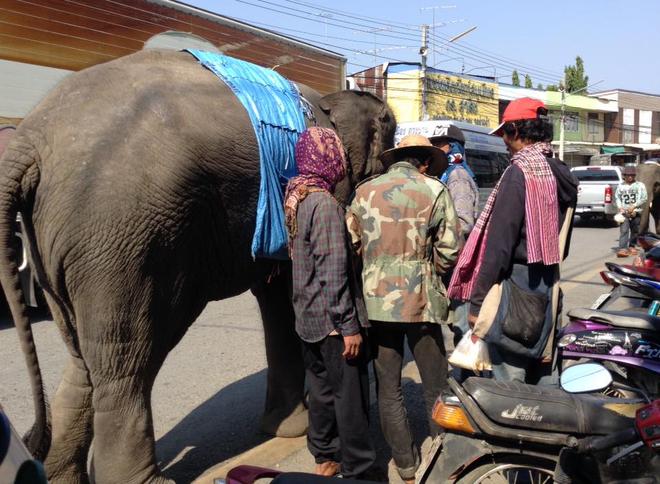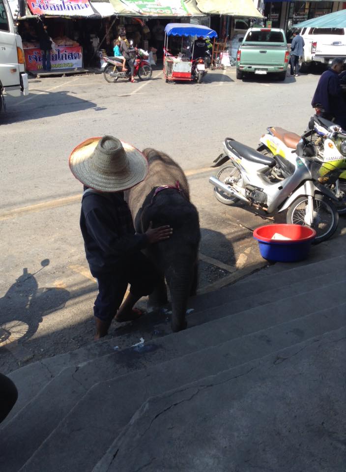 อีกจุดที่พีคคือ เพื่อนพาไปหาข้าวเที่ยงกินที่ตลาดรอบนอก (ห่างจากตลาดในจุดที่พบช้างน้อย พอสมควร) ป้าร้านโชว์ห่วยร้านนึงแถวนั้นบอกว่า "มันมาซื้อเบียร์กระป๋องแล้วก็เหล้าขาวร้านป้าอยู่นะ แล้วก็จะขายอ้อยให้ป้า แต่ป้าไม่ได้ซื้อหรอก สงสารนะแต่ไม่ซื้อ ไม่รู้ว่าช้างได้กินอิ่มหรือเปล่า แต่พวกมันเอาเงินจากแรงงานช้างมากินของดีๆ" แล้วที่น่ารักคือ ป้าถามพวกมันว่าช้างใคร ควานบอกว่าช้างเขาเอง ป้าเลยบอกว่าถ้าช้างพวกเธอ ทำไมเธอไม่ซื้ออาหารเลี้ยงเองล่ะ