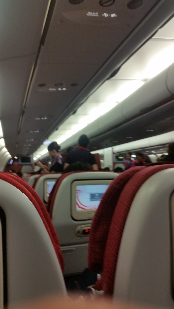 หลังจากนั่งรอ นอนรอ เกือบหลับรอแล้ว แต่กลัวตกเครื่องเลยตื่นรอละกัน ก็ได้ขึ้นเครื่องซะที สงสารคุณแอร์จัง มาถึงแปปเดียวก็ต้องบริการผู้โดยสารต่อ ครั้งนี้เราใช้บริการสายการบินฮ่องกงแอร์ไลน์เช่นเดิม เนื่องจากนางเป็นสายการบินฟูล...อะไรสักอย่างนี้แหละ คือมีน้ำหนักกระเป๋าให้คนละ 20 กิโลกรัมและมีอาหารฟรีบนเครื่องน่ะ เออ...นั่นแหละ คือไม่ใช่สายการบินโลว์คอตว่างั้น แม้นางอาจจะยังไม่มีชื่อเสียงในเมืองไทยสักเท่าไหร่ แต่นางก็น่ารักด้วยราคาและกำลังเพิ่มเส้นทางการบินอีกหลายสาย แต่ชื่อก็บอกอยู่แล้วเนอะว่าฮ่องกงแอร์ไลน์ เพราะฉะนั้นหลายๆสายก็ต้องต่อเครื่องที่ฮ่องกงนะแจ๊ะ