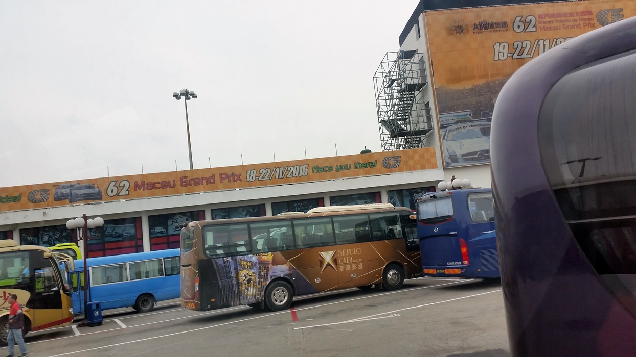 ระหว่างทางนั่งชัตเติลบัสกลับไปที่ท่าเรือเพื่อขึ้นรถเมล์ต่อไปวัดอาม่า เราก็ได้ภาพมาเก๊าทาวเวอร์แบบขมุกขมัวมาหนึ่งรูป