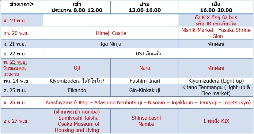 แผนเที่ยว คันไซใบไม้แดง 9 วัน 8 คืน จัดแบบนี้ดีไหมคะ