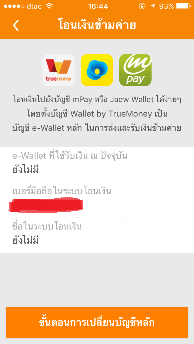 ไม่สามารถตั้งให้ truewallet เป็นบัญชีหลักในการรับ-ส่งเงิน