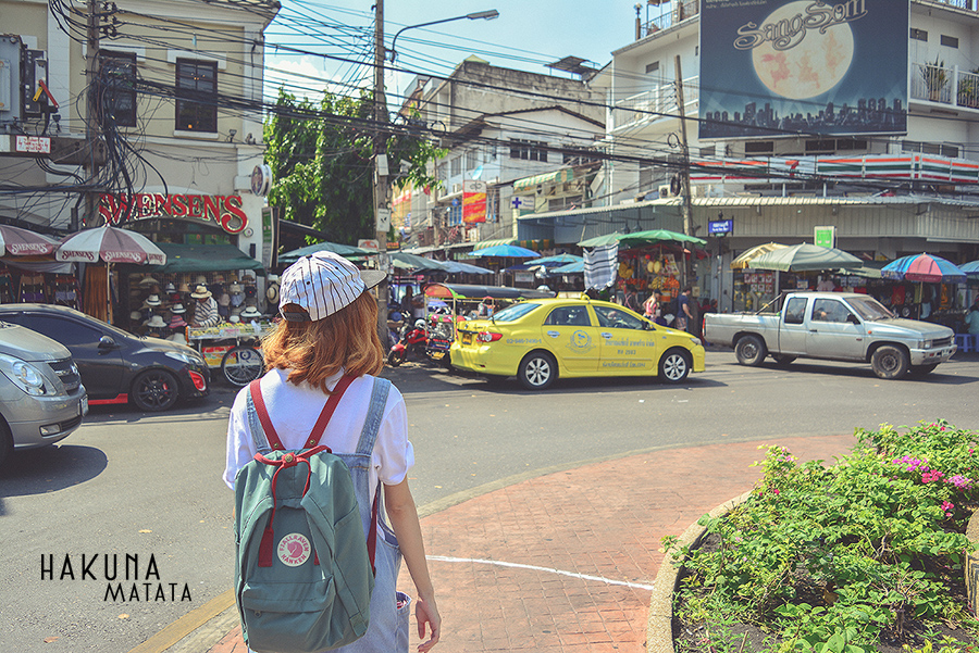 พอทานเสร็จแล้วพวกผมก็เดินลัดเลาะออกมาเพื่อไปที่ถนนราชดำเนิน ระหว่างทางผ่านหน้าร้านขนมปังบางลำพู แล้วก็นี่ครับ ถนนข้าวสาร ไหนบอกคนเยอะไงครับ ในรูปไม่ค่อยมีคนเลยเนาะ แดดก็ออกจะดี