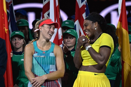 แองเจลิก แคร์เบอร์ นักเทนนิสหญิงชาวเยอรมัน ถึงกับน้ำตาคลอหลังได้ชูถ้วย แกรนด์ สแลม ใบแรกในชีวิตที่ ออสเตรเลีย จากชัยชนะแบบพลิกความคาดหมาย ขณะที่ เซเรนา วิลเลียมส์ มือ 1 โลกชาวอเมริกัน ร่วมแสดงความยินดี ก่อนเปรยตัวเองไม่ใช่หุ่นยนต์ที่แพ้ใครไม่เป็น