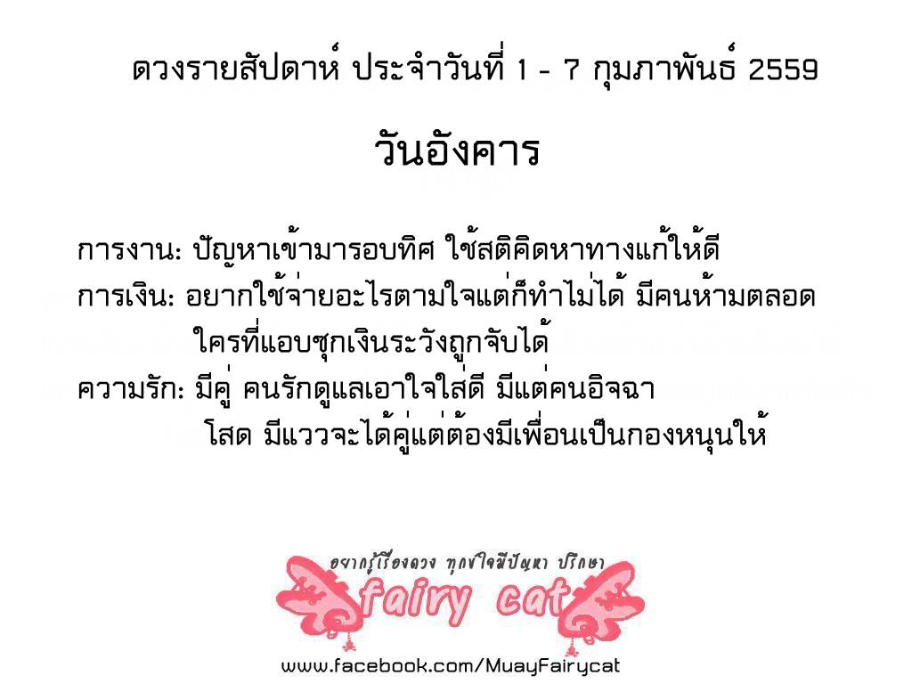 ดวงรายสัปดาห์ประจำวันที่ 1-7 กุมภาพันธ์ 2559 by Fairy cat