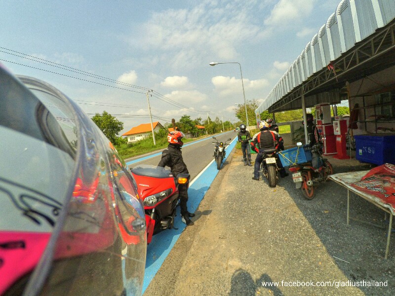 นัดรวมตัวกันที่ปตท. คลอง 6 ไปๆมาๆ พลัดกันอีกคนไปกินข้าวจอดรถด้านในร้าน หาไม่เจอ คิดว่าไปแล้ว เลยนัดใหม่ เจอกันปั้มปตท แยกองครักษ์แทน แล้วถึงได้ออกตัวก็ราว 8 โมงกว่าๆค่ะ