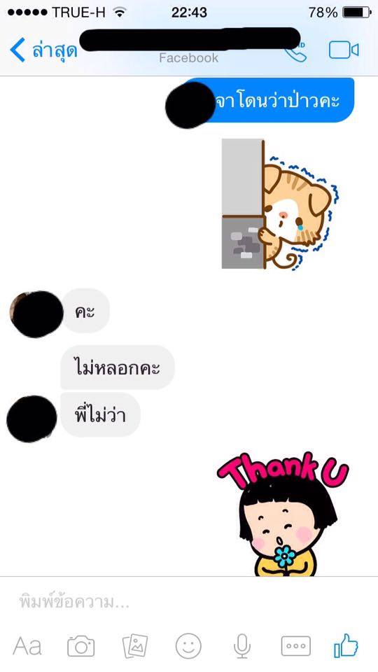 ลืมเดือนป่ะว่ะ แต่แฟนเธอมาตอบแทน ตอนแรกก็ตกใจนะกลัวมันจะโดนแฟนด่า คือเข้าใจว่าบอกทีเราก็ต้องหาเงินมาหมุนโดยที่ไม่ได้บอกแฟนไรงี้ แต่แฟนตอบกลับบมาว่าไม่เปนไรเดวจะโอนให้ เราก็ดีใจสิคะ แต่ก็เงียบหายไปเช่นเคย เราก็ไม่ล่ะความพยายามทักไปเกือบทุกเดือนอ่ะ จนเดือนถึงสิงหาเธอไม่อ่านไม่ตอบ จะโทรก็ไม่มีเบอร์เพราะเปลี่ยนโทรศัพท์ ก็เลยปล่อยค่ะ เหนื่อย คงไม่ได้คืนแน่ๆ