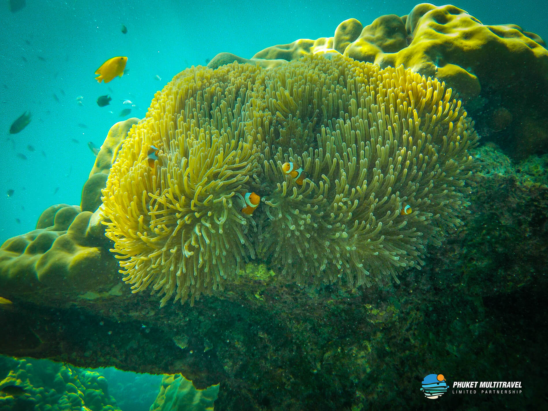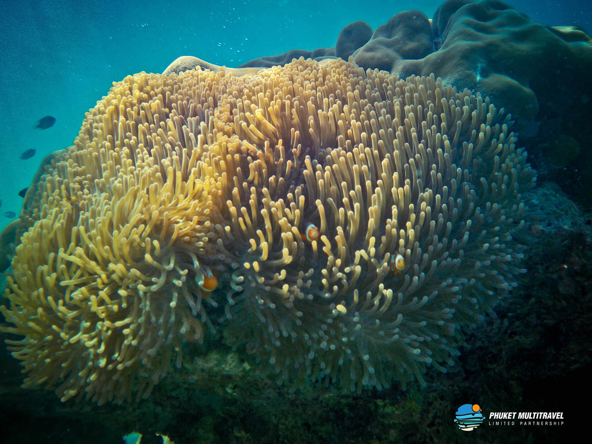 ดารายอดนิยมครับ ปลาการ์ตูน!! สังเกตุว่าปะการังกำลังเติบโตครับ ซึ่งสีสันมันยังน้อย เพราะยังเติบโตไม่เต็มที่ ระหว่างนี้หากไปรบกวนมันมากๆ อาจจะมีผลต่อระบบนิเวศน์ ได้ครับ