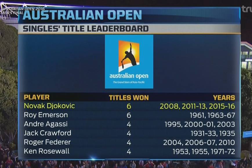 ทำสถิติเป็นนักเทนนิสคนแรกตั้งแต่ยุค Open Era ที่สามารถคว้าแชมป์ Australian Open ได้ 6 สมัย