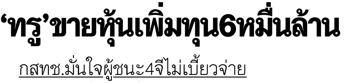 'ทรู' ขายหุ้นเพิ่มทุน 6หมื่นล้าน กสทช. มั่นใจผู้ชนะ 4จี ไม่เบี้ยวจ่าย