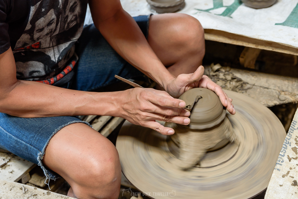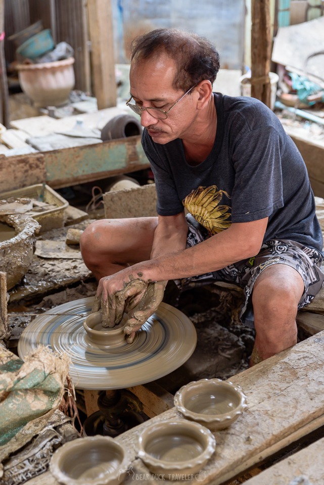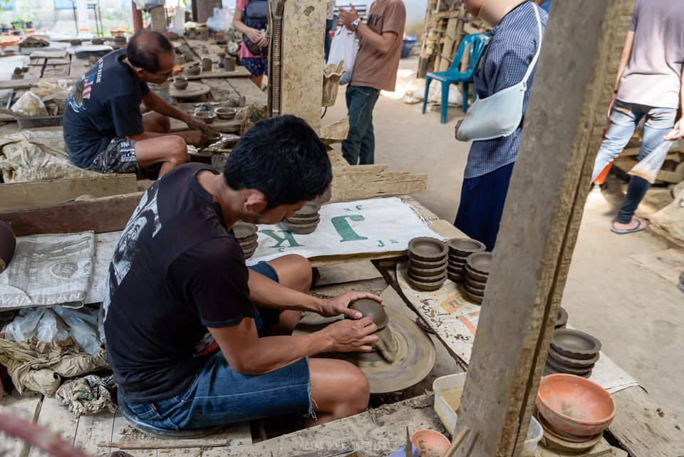 เลยวัดไผ่ล้อมไปนิดหน่อยมีโรงปั้นเครื่องปั้นดินเผา ปั้นโชว์สดๆ ชิ้นงานสวยงามจนฝรั่งติดใจ ซื้อกลับบ้านไปคนละอันสองอัน เห็นแล้วปลื้มแทน
