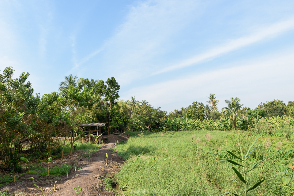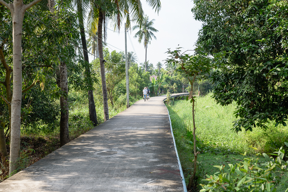แล้วเราก็พบว่าตัวเองอยู่บนทางปูนยาวไกล ขนาบข้างด้วยสวน ทุ่งโล่ง สลับกับบ้านเรือนเป็นระยะ นานๆ จะมีนักท่องเที่ยวปั่นจักรยานผ่านมาทักทาย แดดร้อนระอุ น้ำในขวดเริ่มร่อยหรอ จะเปลี่ยนใจนั่งรถมอเตอร์ไซค์ตอนนี้ก็ไม่มีให้เรียก จะเดินกลับระยะทางก็มิใช่น้อย เราไม่มีทางเลือกนอกจากเดินหน้า และหวังว่าปลายทางจะอยู่อีกไม่ไกล