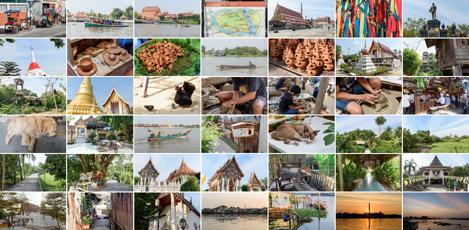 ทอดมันหน่อกะลา ขนมหวานแบบไทยๆ เจดีย์เอียงๆ ริมน้ำ เครื่องปั้นดินเผา ปั่นจักรยานรอบเกาะ นั่งเรือชมวิวเพลินๆ เดินทางสะดวก หลังจากปล่อยให้คนอื่นไปกันจนพรุนแล้ว วันนี้ฤกษ์ดีหมีเป็ดจะไปเยือนนน