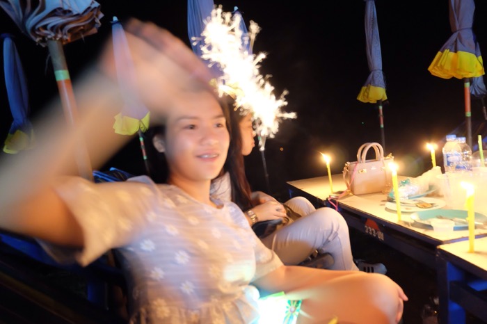 เรานั่งกันจนมืดดูพระอาทิตย์ตกพร้อมเล่นไฟเย็นกัน