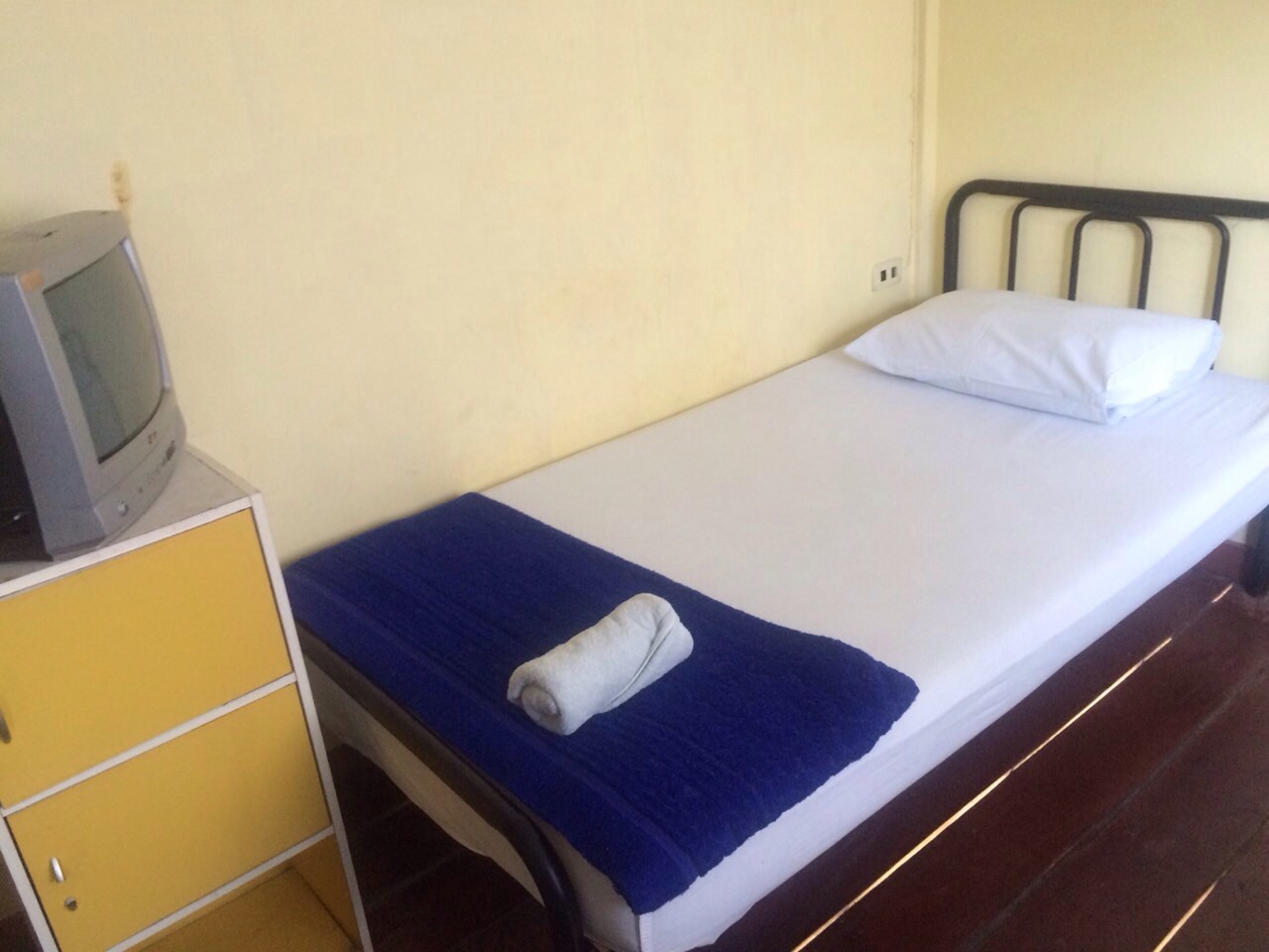 นี่ห้องพักพี่ตำรวจเป็นห้องพัดลม มีเตียงเดี่ยว2เตียง มีทีวีแบบในภาพ ไม่ม่ตู้เสื้อผ้าแต่เป็นตู้เก็บของ