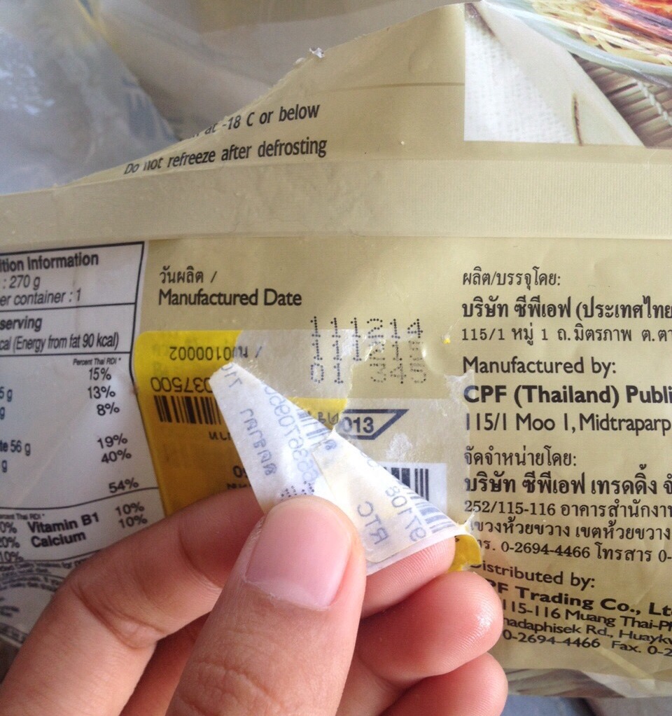 เอะใจ!!! ดูวันหมดอายุ พบว่ามีป้ายราคา ปิดทับไว้ถึง2ครั้ง (เหตุการณ์นี้หากดิฉันอยากดูตั้งแต่ในห้างก็คงไม่กล้าแกะอ่าน)